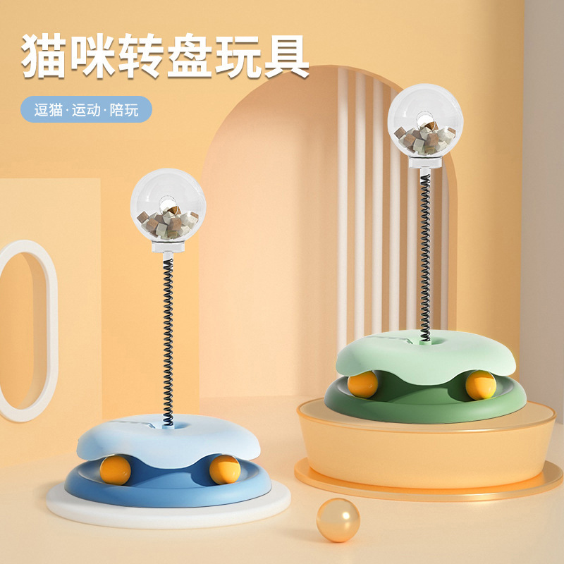逗猫玩具猫转盘带弹簧漏食球猫咪游乐盘自嗨解闷宠物漏食玩具