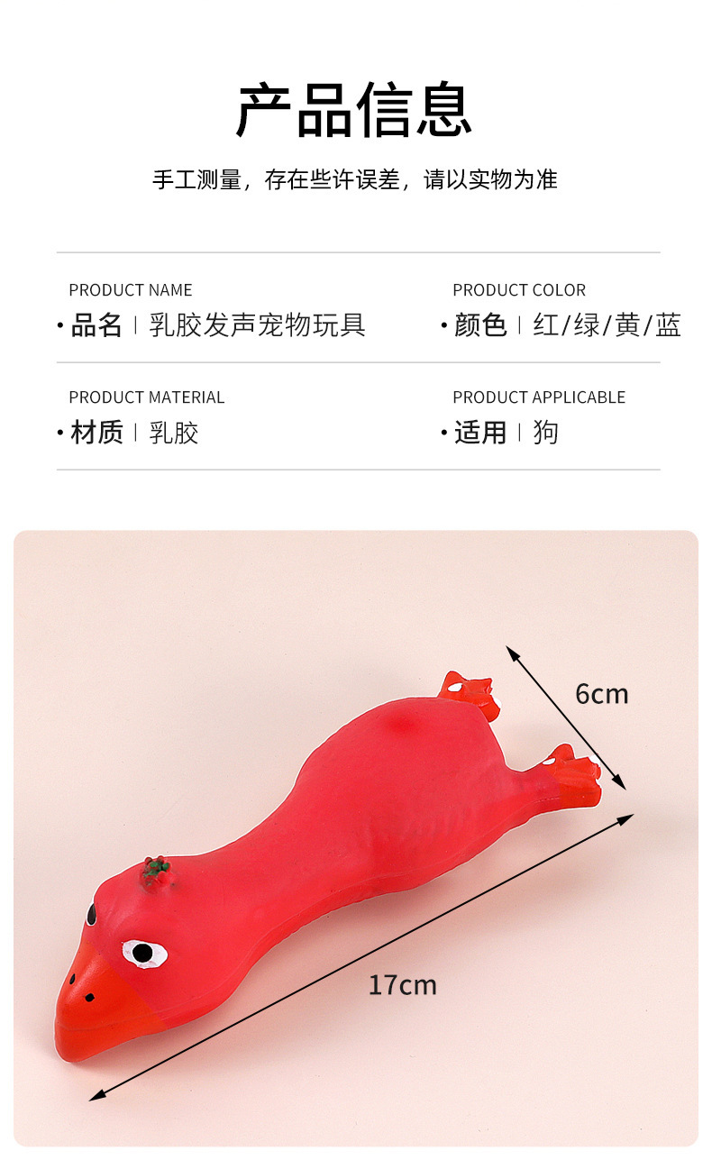 在宠物用品市场中,狗狗玩具一直是热销品类之一,尤其是能够提供娱乐和减压效果的发声玩具,深受宠物爱好者的青睐。如果你正在寻找一种既能让狗狗尽情玩耍,又能有效舒缓其压力的玩具,我们的狗狗*胶发泄*内含棉花回弹快惨*宠物发声玩具,将是您的理想选择。