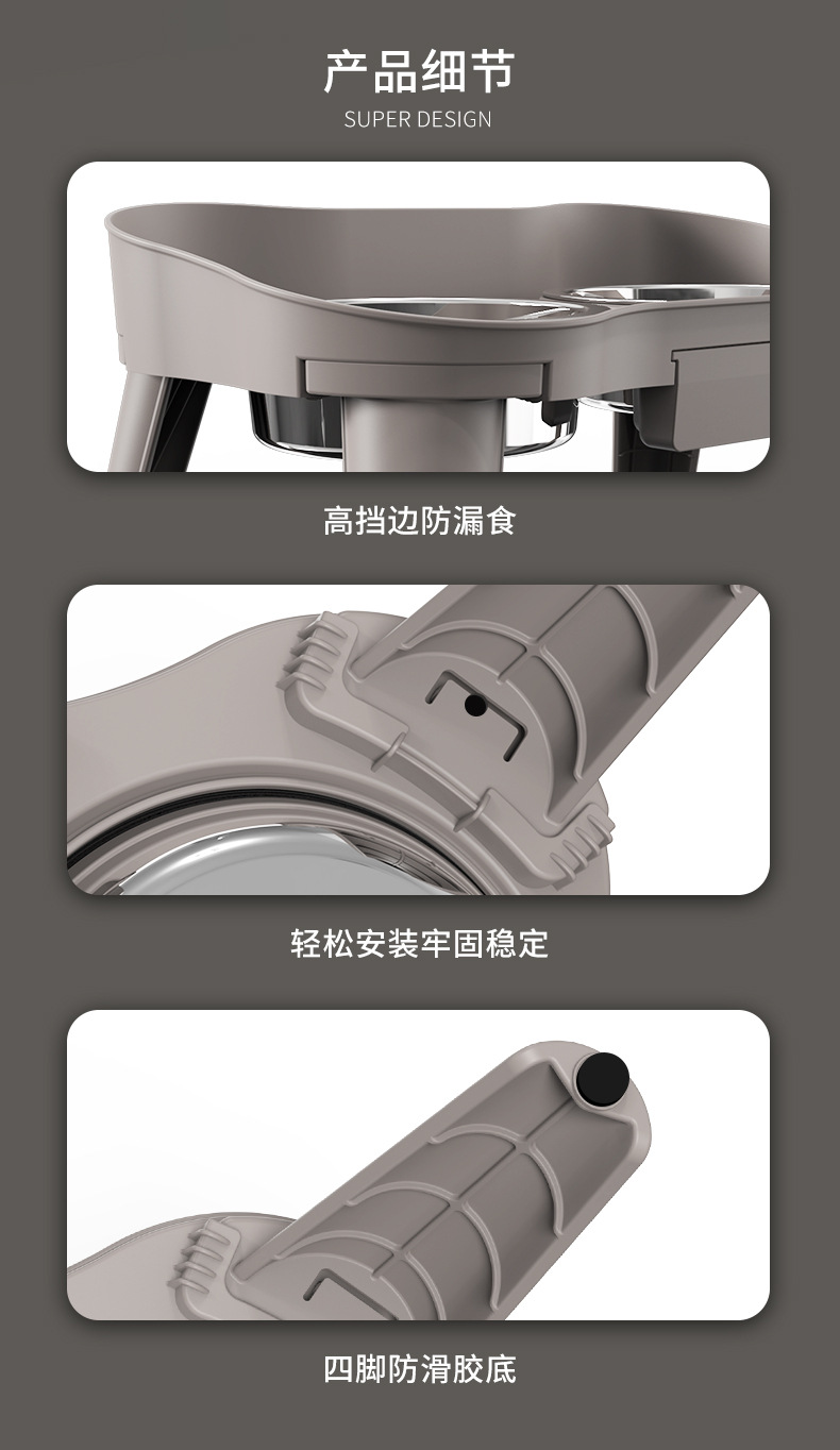 防滑设计: 碗底配有防滑橡胶圈,确保碗在地面上稳固放置,不易滑动,防止宠物在进食时碗被推倒,减少打翻食物和水的麻烦。