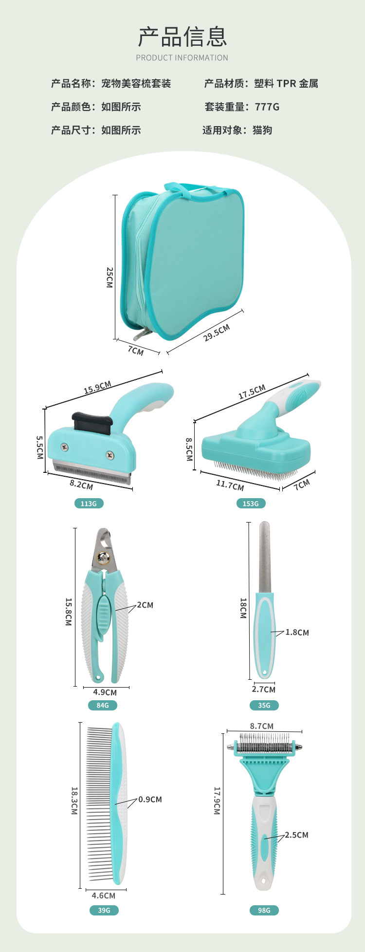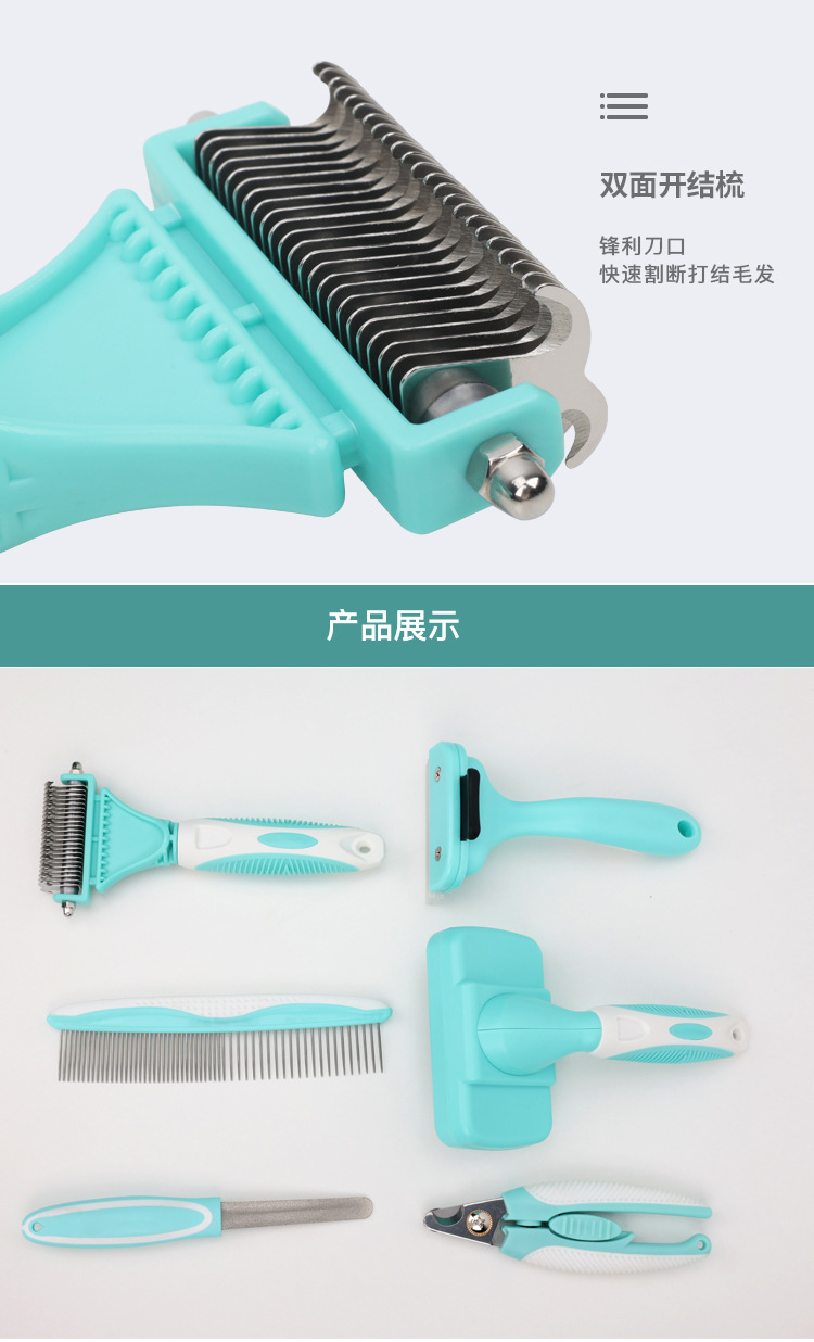 多功能性:套装内的多款梳子适合各种毛发类型的宠物,满足不同梳理需求,功能多样,全面照顾宠物的毛发健康。